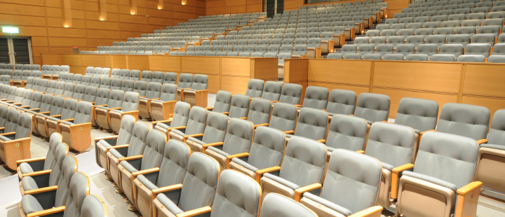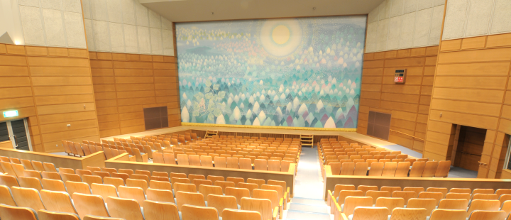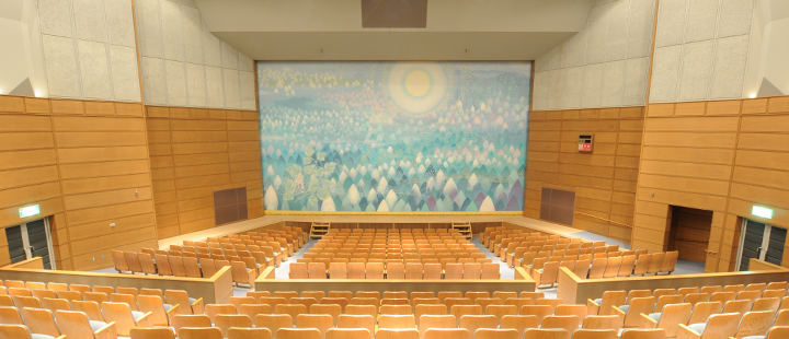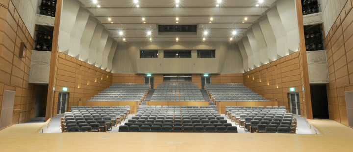 大ホールは固定席547席(うち車椅子席19、親子席8)で、舞台、袖舞台、花道、スロープを有しています。このホールは、各種会合や文化団体の発表などをはじめとする社会貢献活動の場、コミュニティーの場として利用いただくほか、貸館としても活用できます。